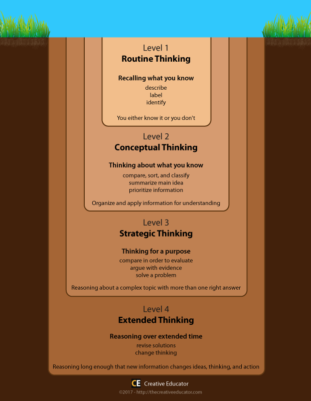 - At Level 4, students think over an extended period of time. New information gathered during the learning process changes student ideas, thinking, and action.